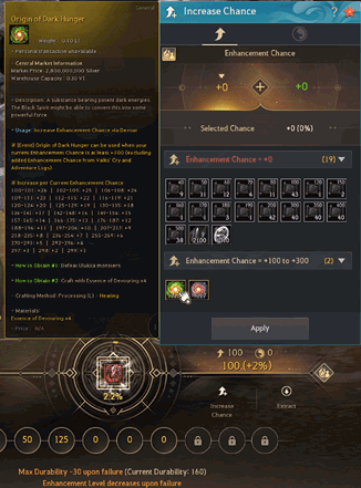 - Added a confirmation message when increasing Enhancement Chance with items such as Advice of Valks, Valks' Cry, and Origin of Hunger.