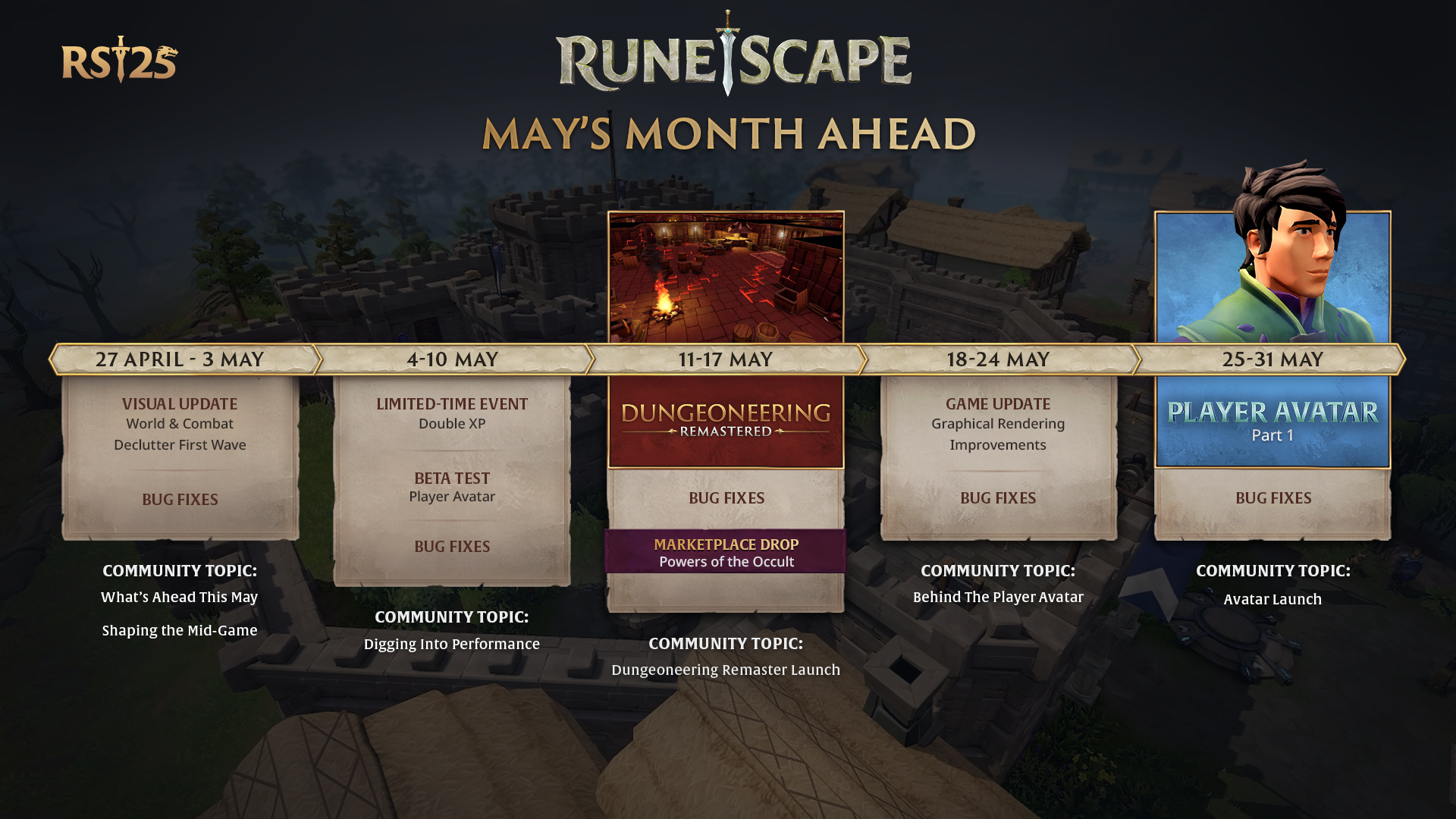 - While the majority of the Dungeoneering Remaster is launching on May 11th, we will only be releasing aspects of the update related to speedrunning in the following week. This is to ensure that there are no issues present in the update that would give early speedrunners an unfair advantage over later speedrunners. We also want to use this gap to validate how expected time thresholds for completion change after the update has been implemented.